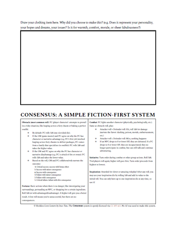 This game runs on Consensus, a simple system that encourages everyone to tell a fun story together without worrying about mechanics or outcomes. Consensus games are designed so that you can introduce each rule as it comes up, even for players who have never played a TTRPG.